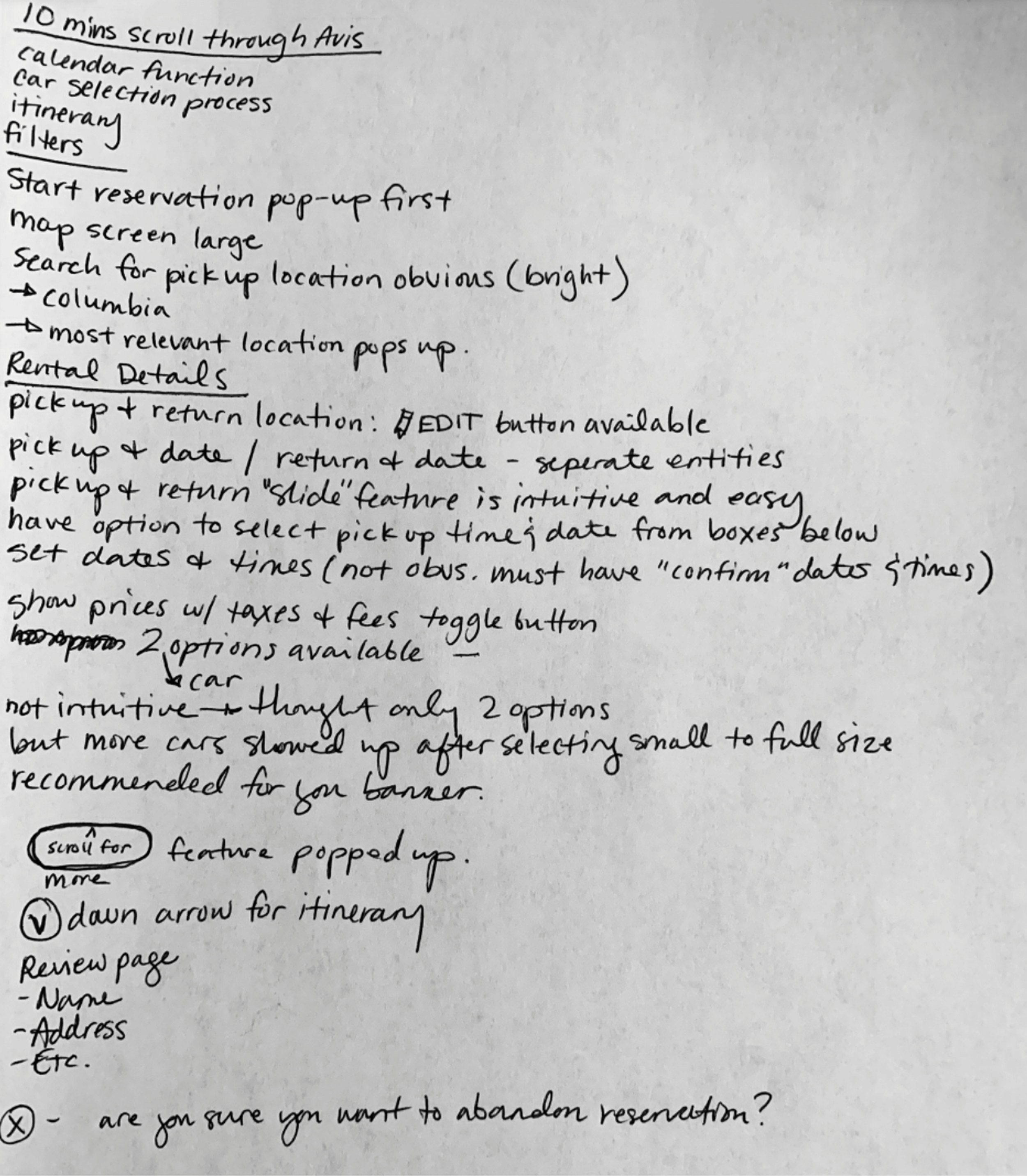 Using her experience, I asked her to use the Hertz app and explain to me her thought process as she gets closer to the checkout line.